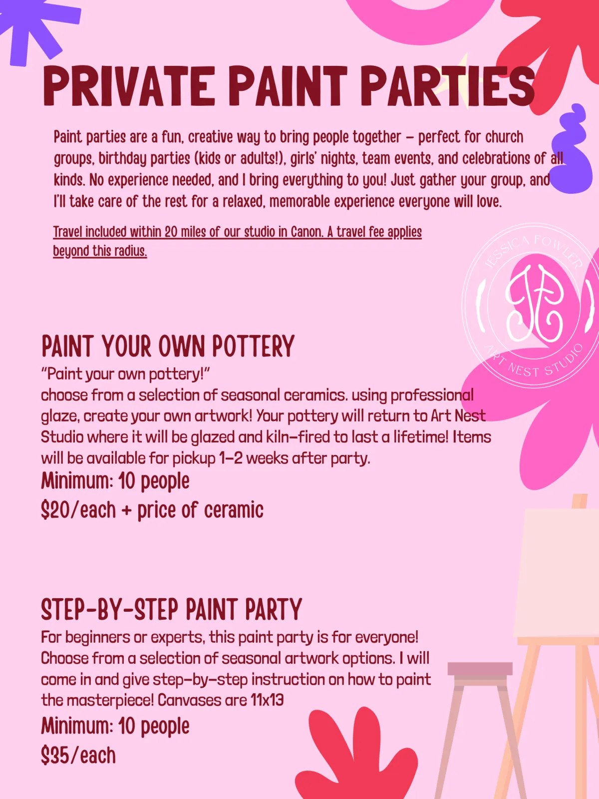 I consent to receive SMS notifications, alerts, and occasional marketing from Fowler Art Nest . Message frequency varies. Msg & data rates may apply. Text HELP to (706) 371-1323 for help or STOP to unsubscribe anytime.